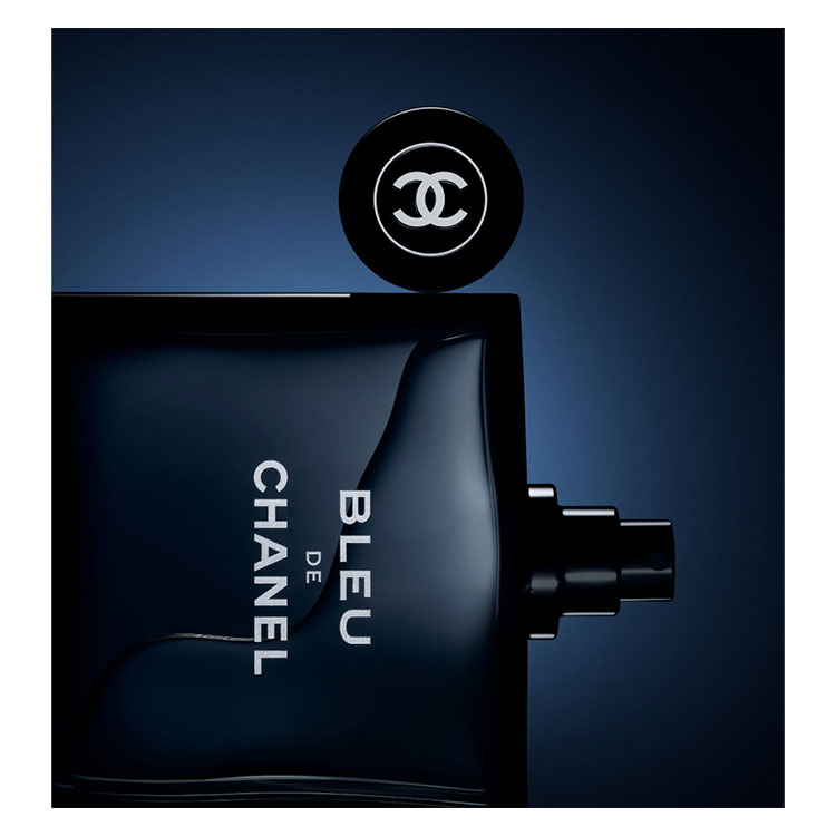 اگر به بطری این عطر مردانه و قوی دقت کنید، نام Blue de Chanel را که با رنگ روشن روی شیشهی تیرهی این شانل چاپ شده را مشاهده خواهید کرد. زیر این نوشتههای درشت، Eau de Parfum را میبینید. این نوشته، وجه تمایز شیشهی ادو پرفیوم و ادو تویلت بلو دو شانل با هم تلقی میشود. در بطری با رنگ شیشه همخوانی داشته و با شکل استوانهای و مستحکمش وزن خوبی را به ترکیب کلی این بطری اضافه میکند.