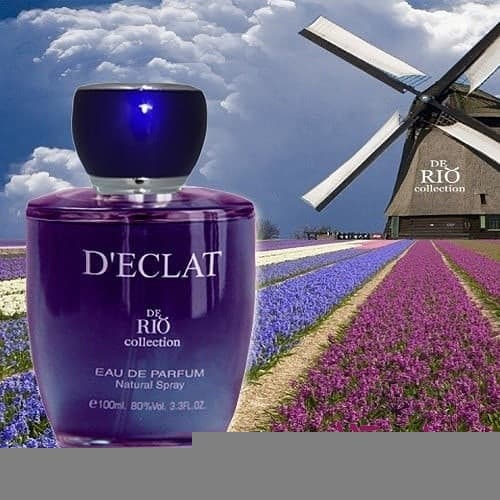 عطر زنانه «» ریو کالکشن (Rio Collection D’Eclat for women) توسط کمپانی Rio Collection با رایحه ای گلی و میوه ای مناسب روزهای خنک بهاری روانه ی بازار گردید. این عطر زنانه که جایگزین عالی برای عطر معروف «Eclat d’Arpège» می باشد دارای رایحه ی غالبی از مشک ، سدر ، چای ، عنبر و اسطوخودوس است .